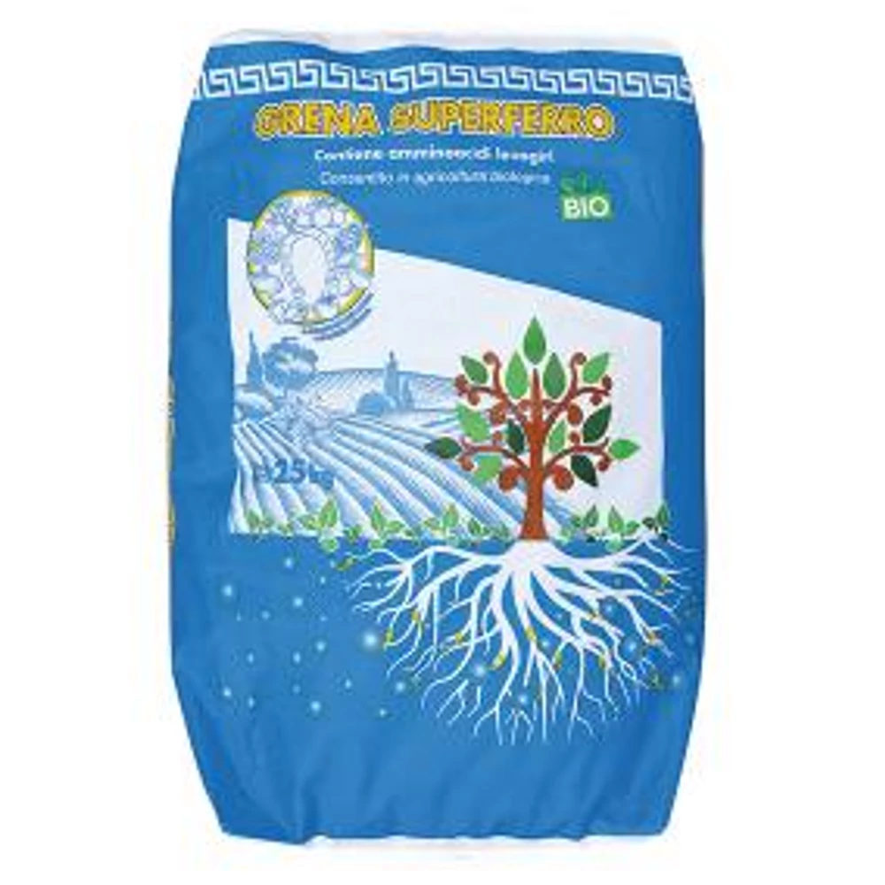 A Grena Superferro közel 40% GRENA szerves mátrixot tartalmaz, ez a nagy arány biztosítja a növények élettani folyamataihoz felhasználható aminosavak jelenlétét. Különösen alkalmas a vashiányos talajok javítására.